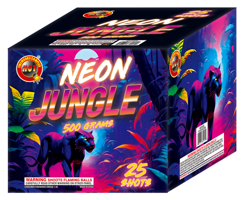 Neon Jungle - 25 Shot Home » Products » Neon Jungle – 25 Shot The sky brightened with superb neon color changing bangs and crackling. ITEM#: 7217 Product Description See also: Forbidden Island – 30 Shot Dave Secret Garden << return to Products