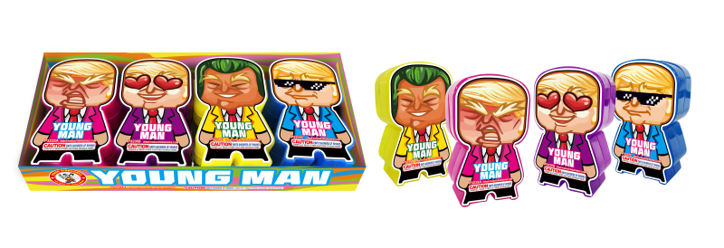 A) silver fountain/red strobe with silver swimming snake; B) gold & silver fountain/shimmering lace with red pearls; C) red ti-rain with gold swimming snake & blue pearls; D) purple flame & gold rain/round silver cracker with red, green & blue.